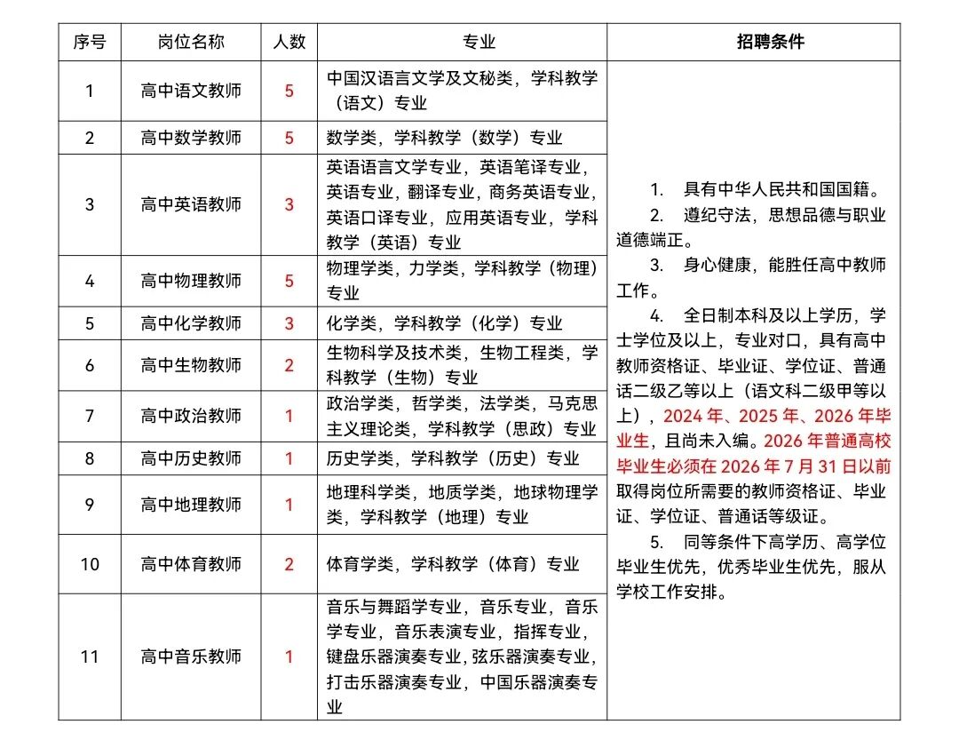 为解决南宁市武鸣区武鸣高级中学教师队伍人才紧缺问题,确保学校教育教学工作正常开展,按照公开、平等、竞争、择优的原则,我校使用实名编制公开招聘教师29名。现将有关事项公告如下: